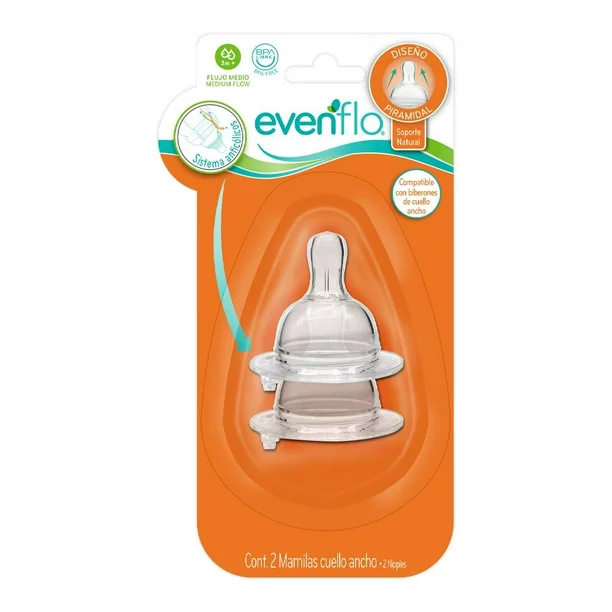 MAMILA EVENFLO CUELLO ANCHO F.MEDIO 2PACK (2116)